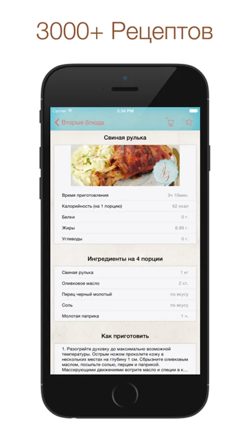 • 3000+ рецептов: (Закуски, Первые блюда, Вторые блюда, Салаты, Соусы, Выпечка, Десерты, Напитки, Коктейли, Закрутки)