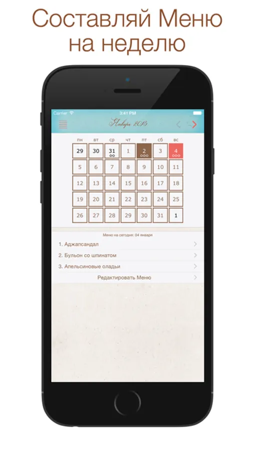 • Возможность составлять меню на день, неделю, месяц и т.д.