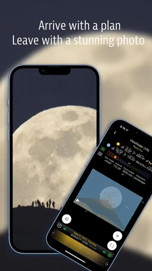 Photographers use various tools to help them pre-visualizing the scene. Nowadays, many of those tools are phone apps. Planit Pro is an all-in-one solution that is designed to leverage the map and simulated viewfinder technologies to provide the necessary tools for photographers to pre-visualize the scene in combination with the ground subjects and the celestial objects such as the Sun, the Moon, Stars, Star-trails and Milky Way.