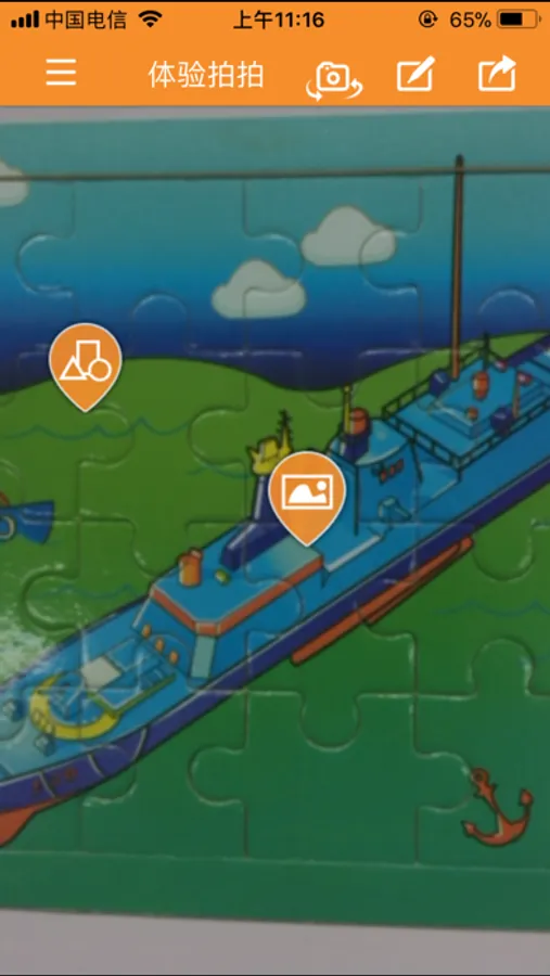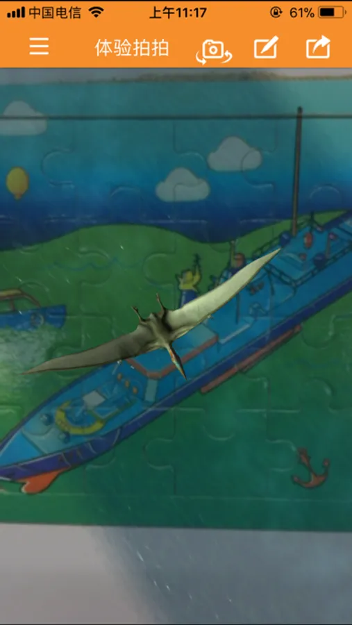 3、体验拍拍:制作好后点击体验按钮,然后把摄像头对准你刚才所拍摄的物品或场景,神奇的效果跃然屏幕。
