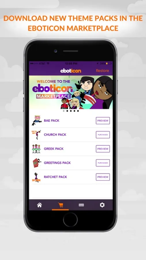 We’ve updated our app with new skin tone options, keyboard, a marketplace of Eboticon packs, and social media sharing!