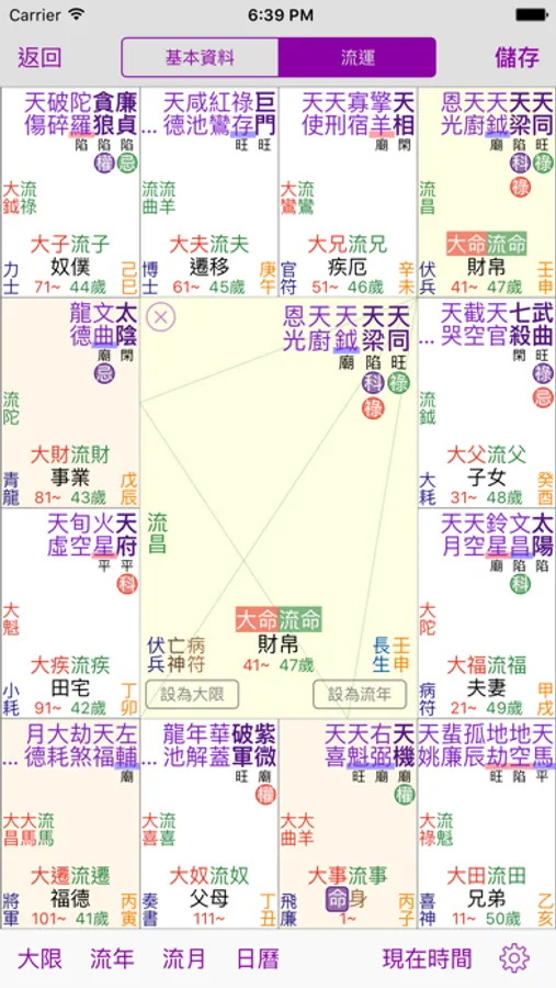 ‧ 提供「五行局」、「子年斗君」、「流年斗君」。