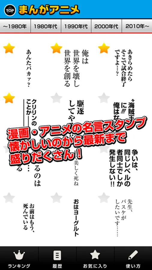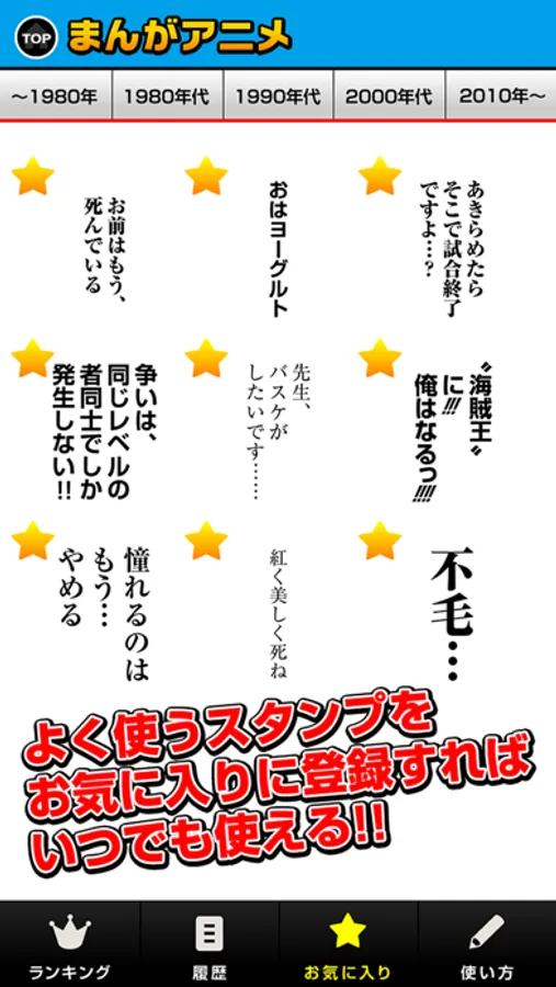This application is the one you like to stamp the words that are likely to say the appearance of characters and anime popular manga.