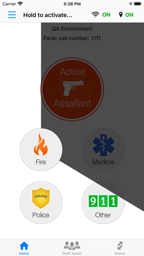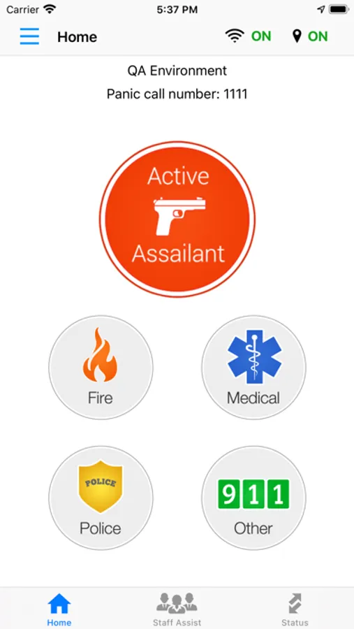 For lower-severity issues not requiring a 9-1-1 call, you can use the Staff Assist feature to notify on-site individuals only. Using Staff Assist will not dial 9-1-1.