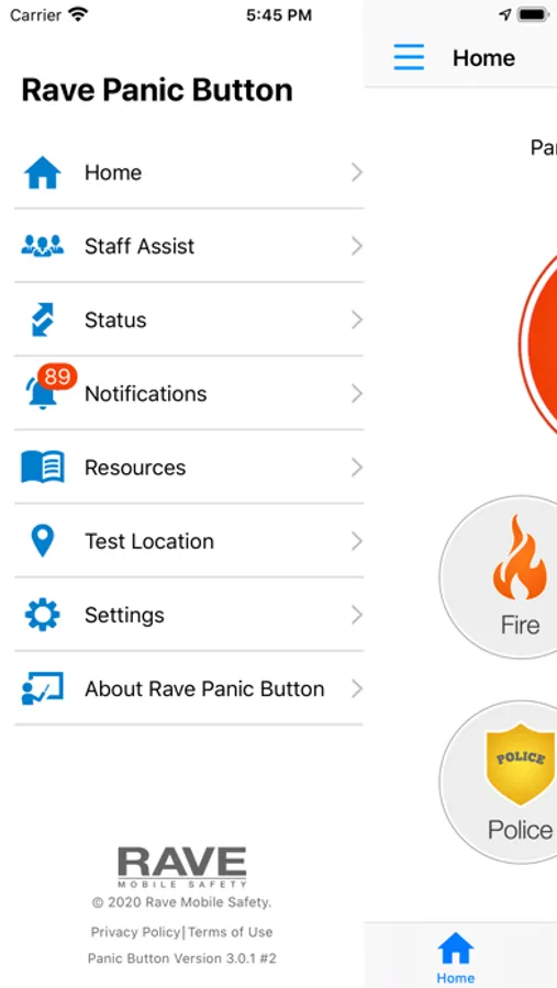 • Some Rave Panic Button features require a data connection and access to your phone's location services.