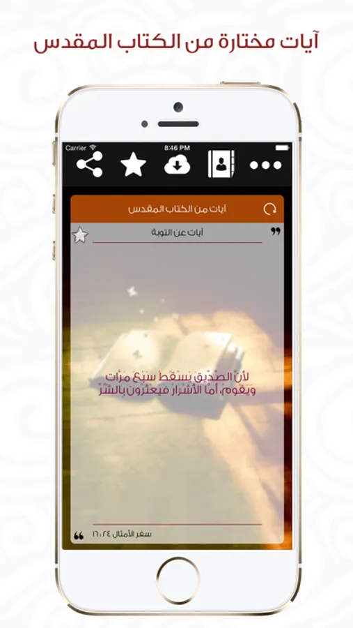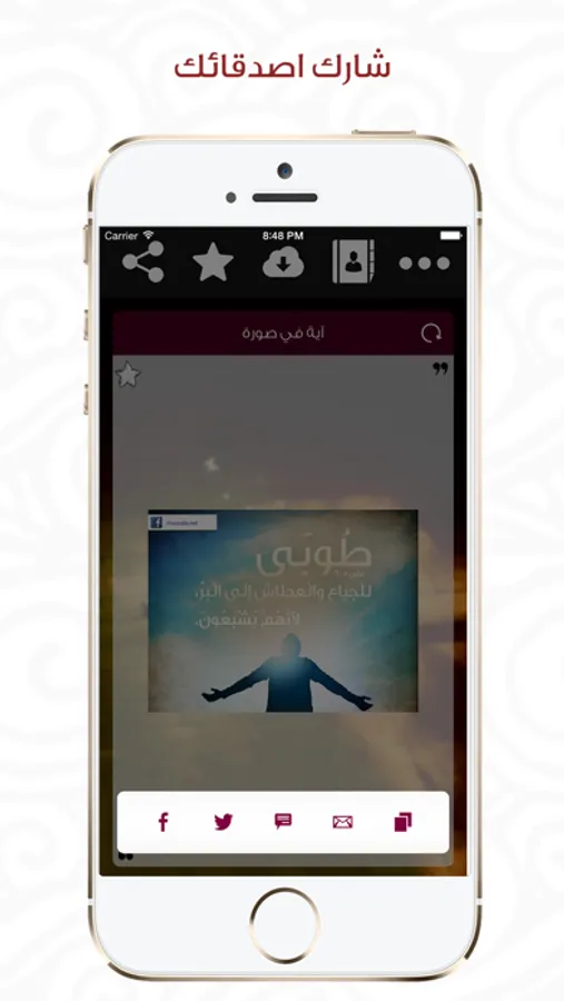 بالإضافة لذلك يحتوي هذا التطبيق على آيات ذهبية مميزة البعض منها مع صور خلفية لتشاركها مع أصدقائك وعلى جوالك وتبارك بها آخرين من خلال وسائل التواصل الأجتماعي المختلفة