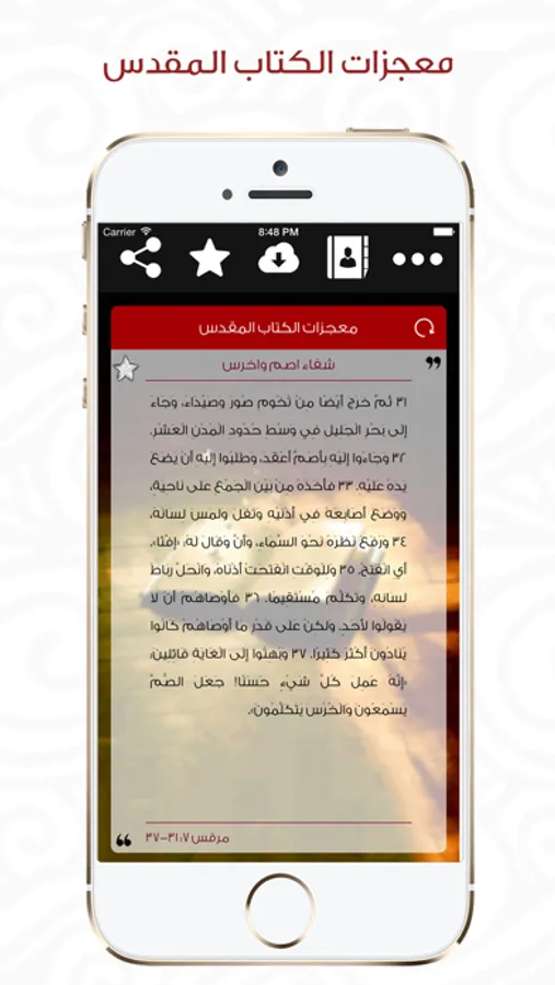 يحتوي هذا التطبيق على كل المعجزات التي قام بها السيد المسيح بحسب ما جاء في الأنجيل المقدس، وهي 38 معجزة كل منها بشاهده الكتابي.