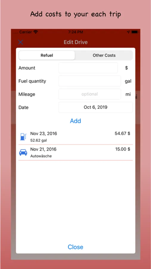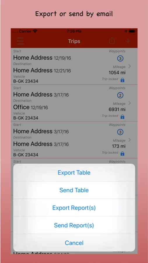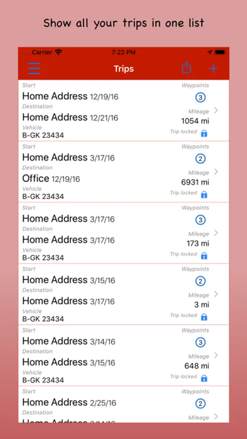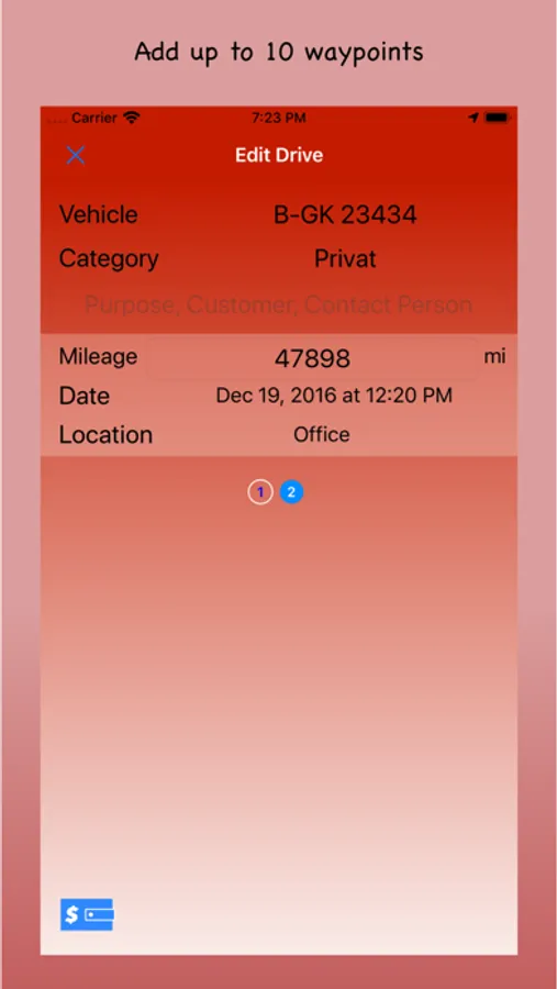 DriveLogger enables you to track and log your professional and private trips with your car(s).