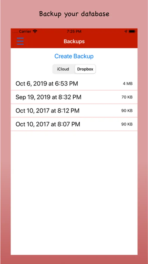 The complete logbook can be exported as comma-separated-file for Excel (*.csv) or as printable pdf document to the local app documents, to Dropbox, iCloud Drive (iOS 8) or send via email (In-App Purchase).