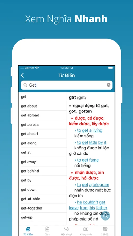 - Xem nghĩa ngay khi đang tra từ.