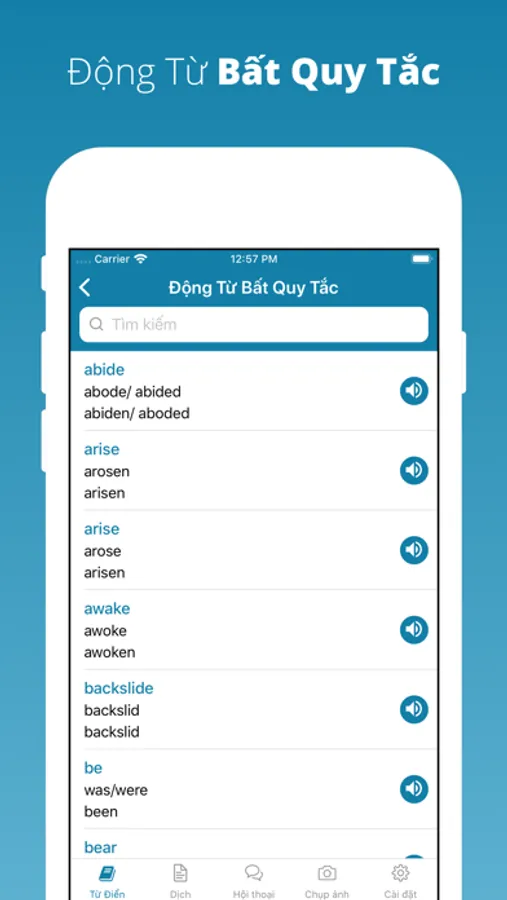- Bảng động từ bất quy tắc.