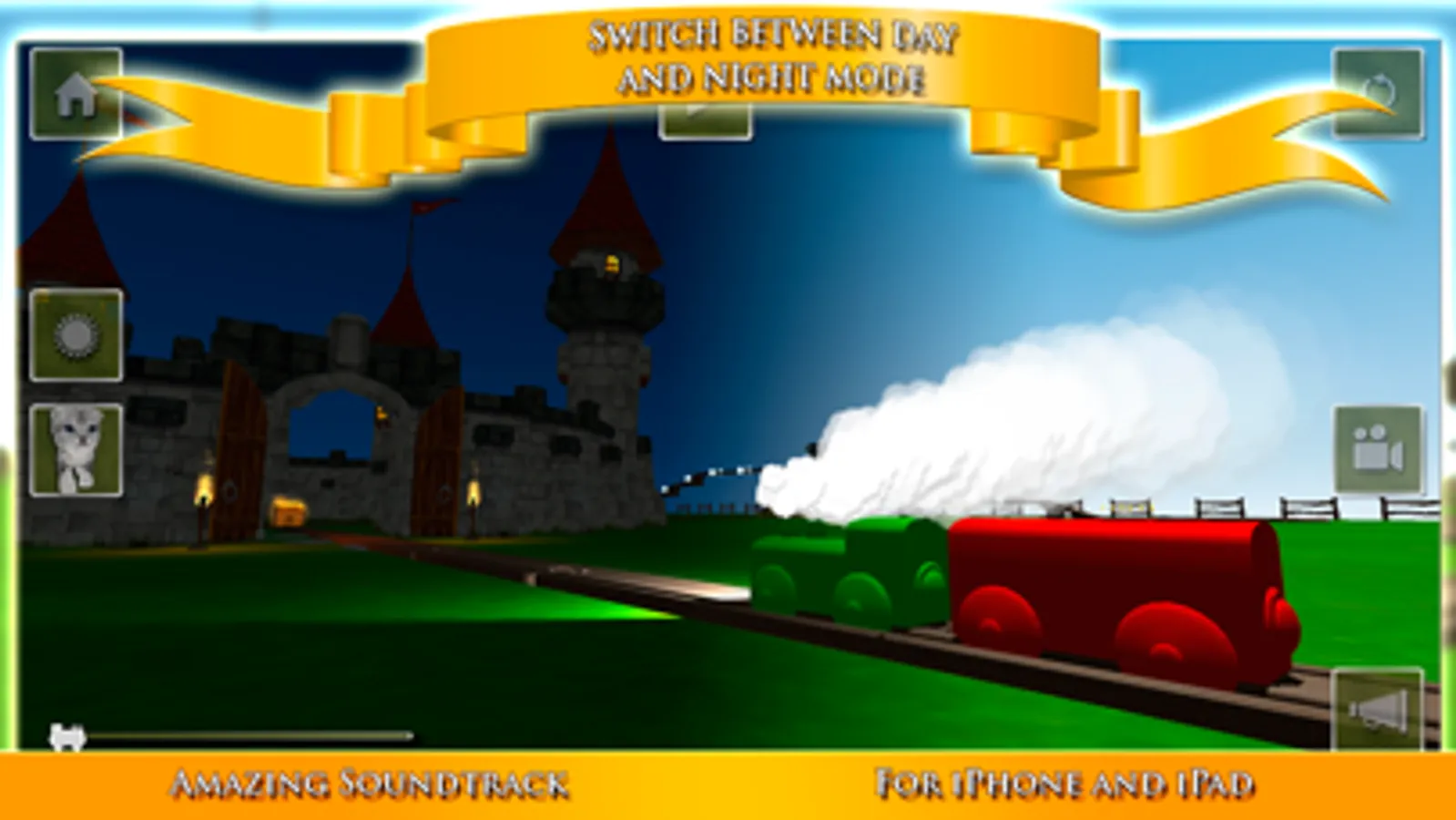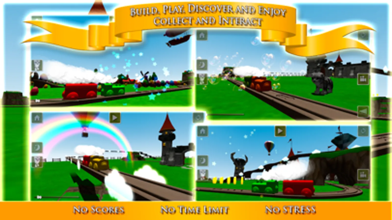 - Interactive elements: Catch soap bubbles, play the whistle, change the color of the train going under the rainbow, interacts with the knight's castle, plays with the cat, look at the globe, butterflies, collect coins, diamonds and Easter eggs ... fun unlimited!