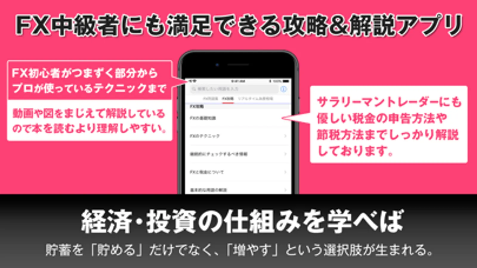・「FX攻略」機能で、動画や画像でより実践的なテクニックを学ぶことができます。