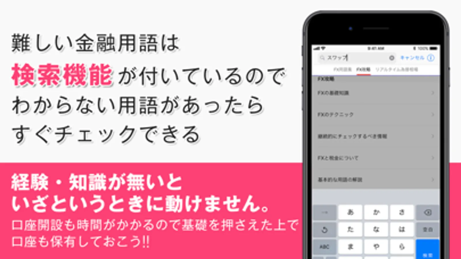 FX専門の無料辞書アプリとして使える本アプリ。最新版では基本用語に加えて、押さえておきたいテクニカル用語などもピックアップ!