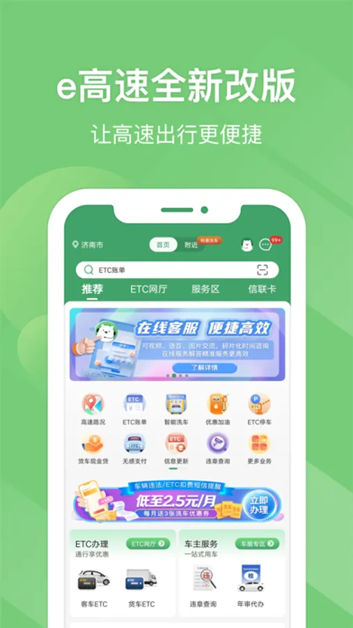 1)ETC一站式服务:在线申办、便捷查账、24小时售后贴心守护