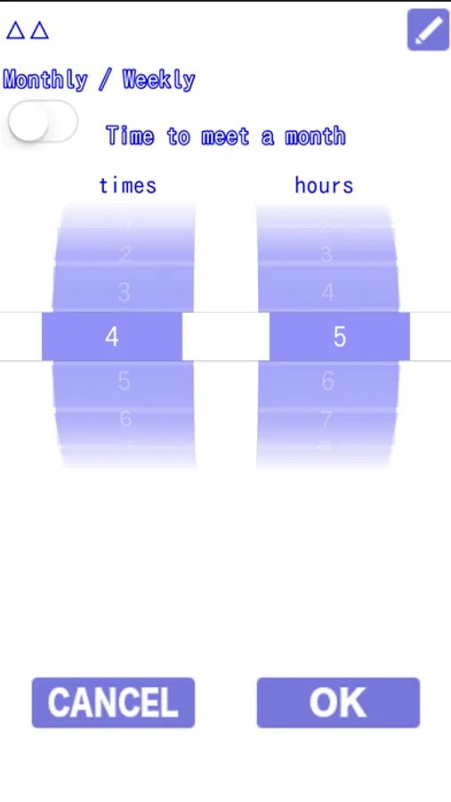 → "3 times in a month(5 hours)", "only weekend", etc...