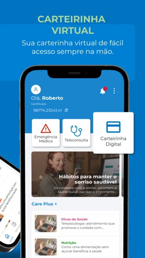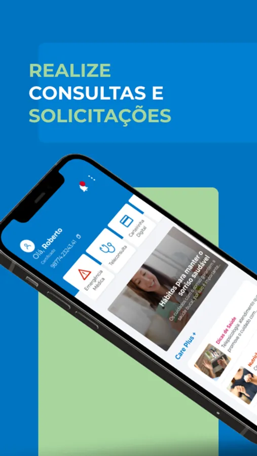 O aplicativo Care Plus permite aos beneficiários de seus planos de saúde obterem, de forma rápida e fácil, informações de rede credenciada, inclusive por geolocalização, além de realizarem e consultarem solicitações de reembolso, autorizações e seguro viagem.