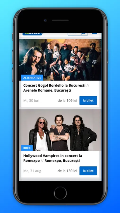 Prin aplicatia iaBilet poti cumpara bilete la toate evenimentele care conteaza din tara si chiar din strainatate. Nu mai stai la coada cand cumperi biletul si nici cand intri la concert. Online e mereu mai rapid si mai ieftin.