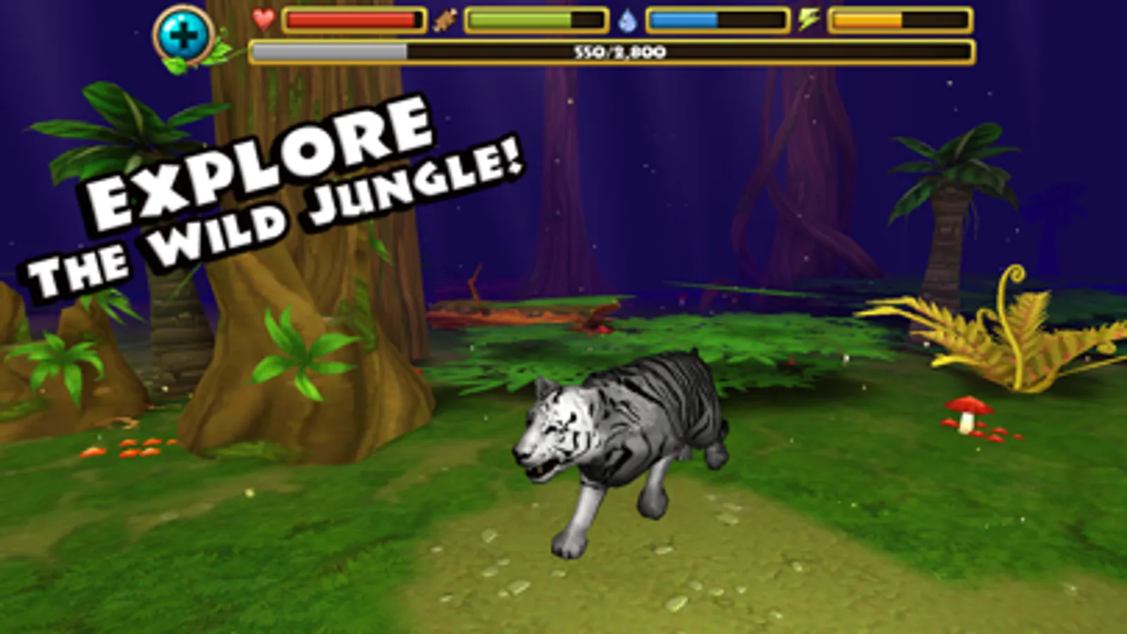 + HUGE 3D ENVIRONMENT - Your tiger is free to explore a massive open-world jungle filled with dangerous carnivores, lush greenery, and sparkling water!