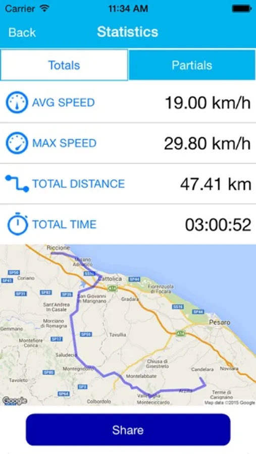 With BTrack you can see the position of your bike on the map, activate or deactivate the anti-theft mode and/or the method of tracking online, view statistics such as average speed, maximum speed, Km traveled and calories burned.