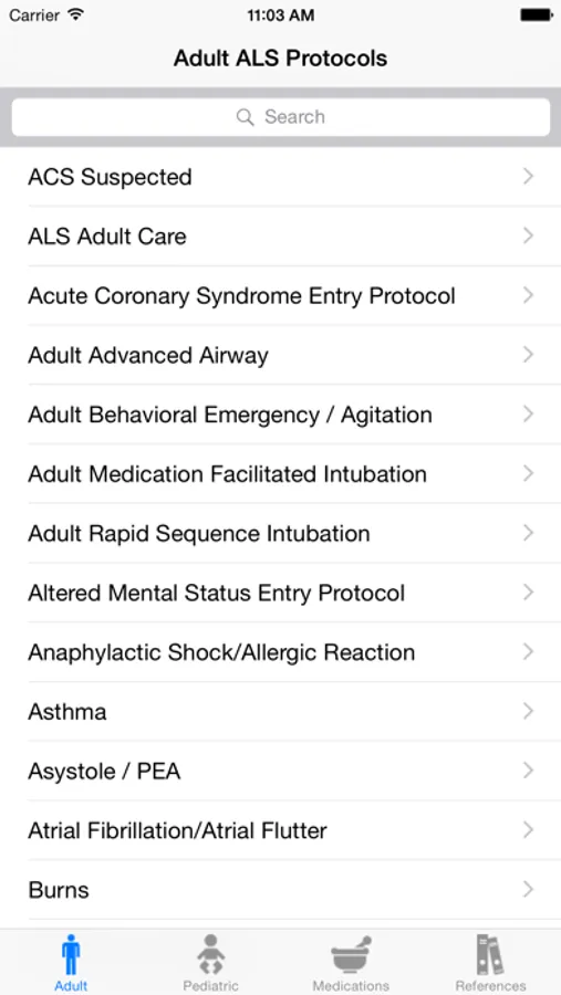 ALS Protocols contains the latest adult and pediatric protocols, medication facts and other reference materials. The protocols are color coded in the same way as the printed manual which everyone is familiar with.