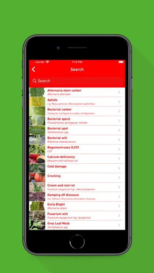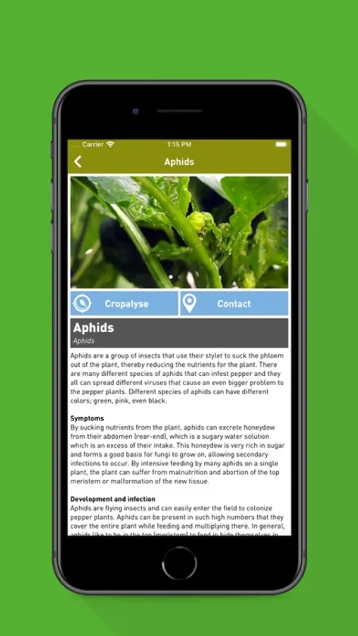 - Helps identify the pest or disease by following a simple search function “Cropalyse”