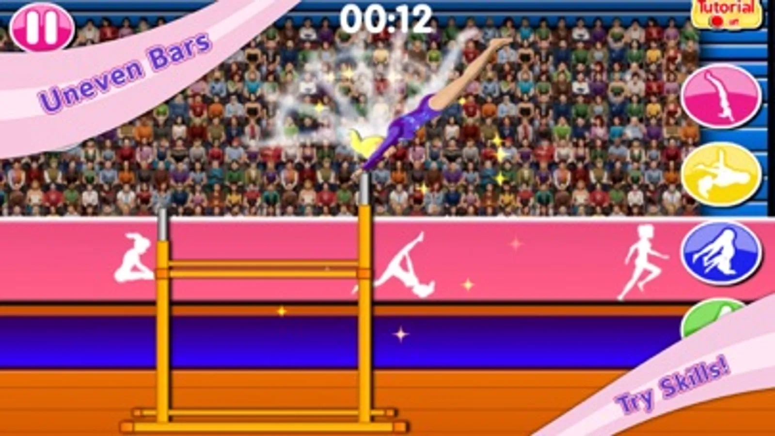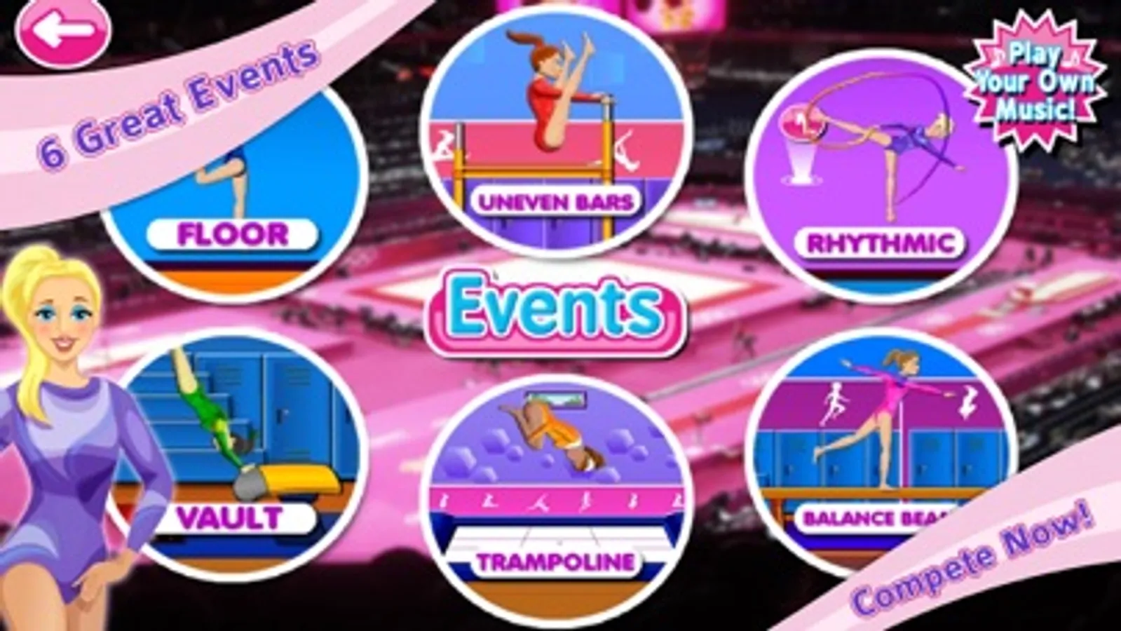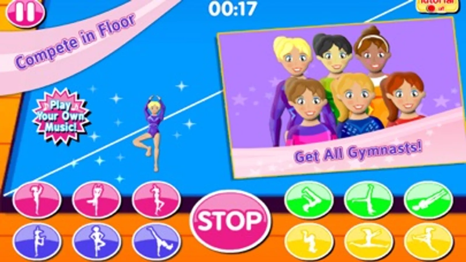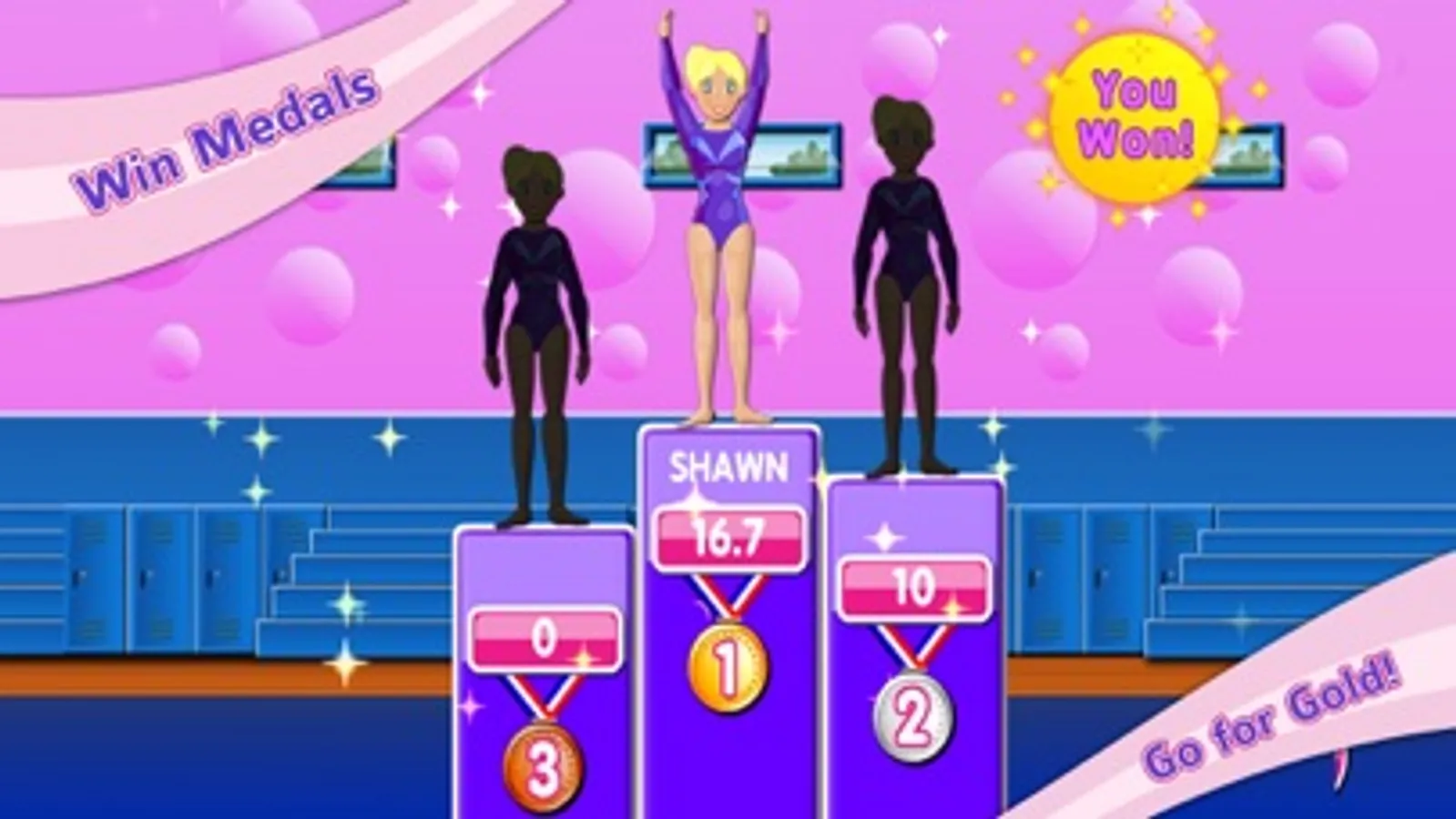 Compete on the uneven bars, rhythmic dance, balance beam, trampoline, vault, and even a floor routine! Learn tricks, moves & jumps. Practice & get high score! Earn medals.