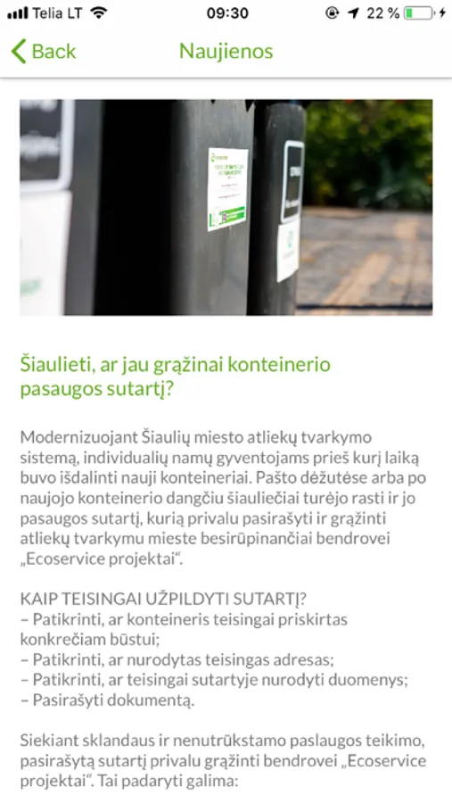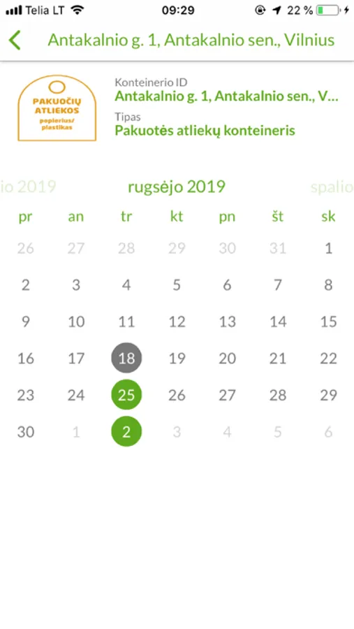 Atliekų rūšiavimo kalendorius, artimiausios atliekų rūšiavimo aikštelės paieška, priminimai apie konteinerių paruošimą