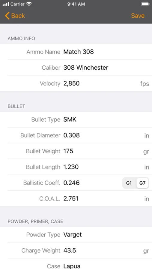 • For reloaders and handloaders, this app allows you to test and record different ammo recipes while tracking their accuracy. Record detailed information about charge weights, projectile choices, primer types, and more. You can write and save notes so that you never forget or lose anything!