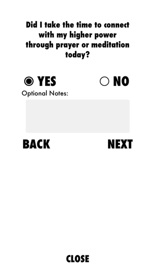 Tenth Step nightly inventory app that was created by members to help simplify their daily inventory. It doesn’t get easier than this. Reflect on ten yes or no questions at the end of your day to help you complete your 10th Step inventory. Inventories are saved and stored by date. Optional tool within the app lets you “track” how well you’re walking on the 12th Step beam over time, depending on how you answer each days questions.