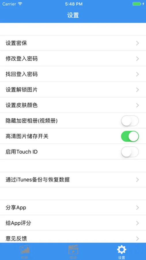 4、登入需要密码,也可以对某个相册设置单独的密码,在支持Touch ID设备中支持使用Touch ID解锁。