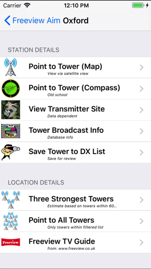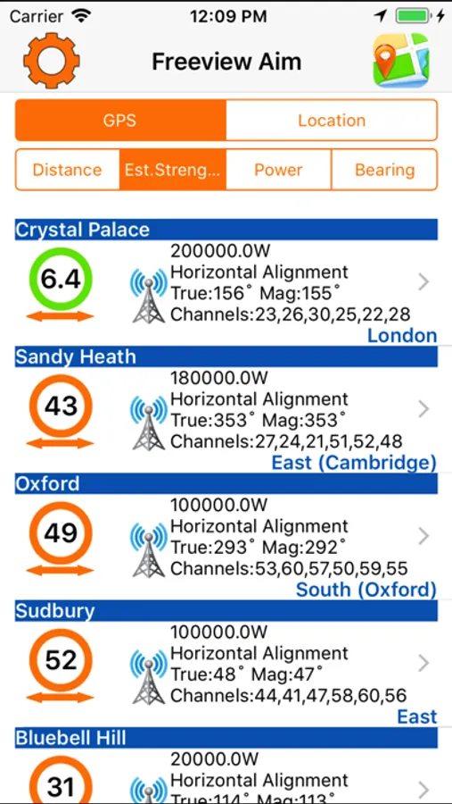 Freeview Aim will list all stations within 120 miles of your current geographical position as indicated by your iPhone/iPad.