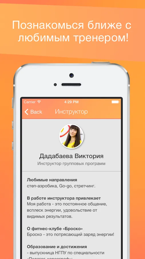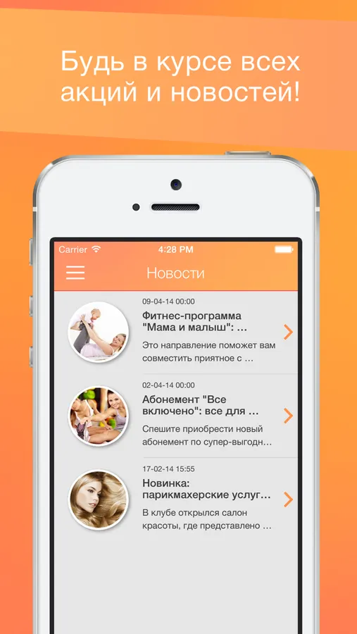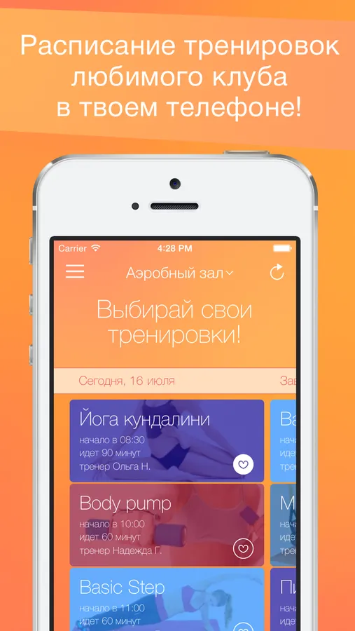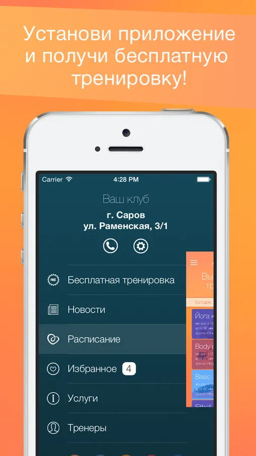 Мобильное приложение позволяет просматривать актуальное расписание занятий всех клубов сети, читать новости, изучать различные виды занятий, планировать распорядок тренировок.