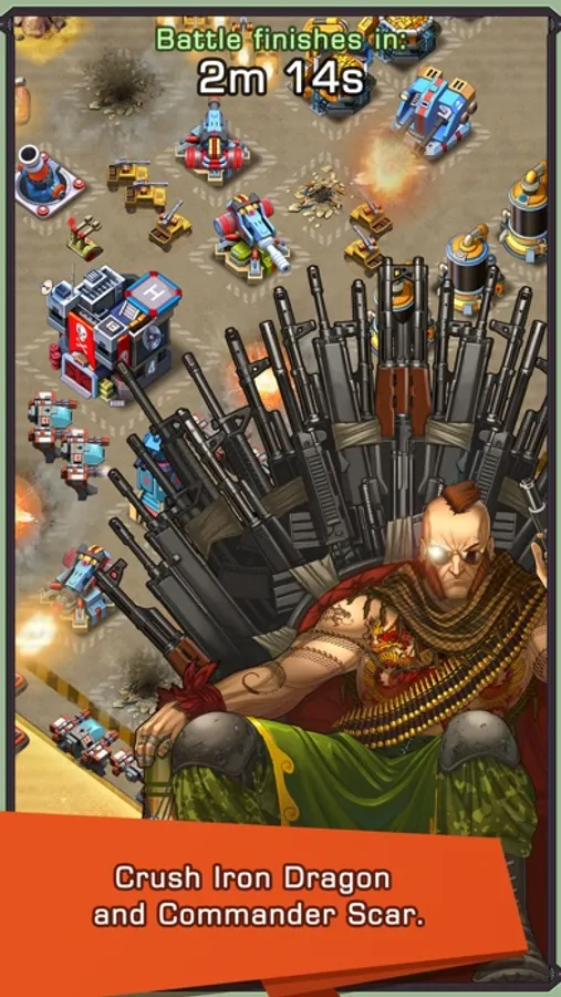 Iron Desert is a free cross-platform war game that can be played on any device. This is a game about heavy artillery, fierce battles, and dominating the enemy. The dynamic struggle will capture your attention as soon as you start playing. Gather valuable resources, expand your base, upgrade your guns, hire military units. Defeat the mad villain, Iron Dragon, and his underling, Commander Scar, to free the continent from their oppression. In Iron Desert, you can build up your military base into an unassailable fortress, do battle with other players, and blow their bases to smithereens. Team up with your friends and create your own clan to grind all who stand in your way on the path to rule the desert.