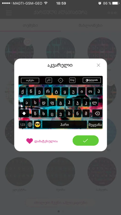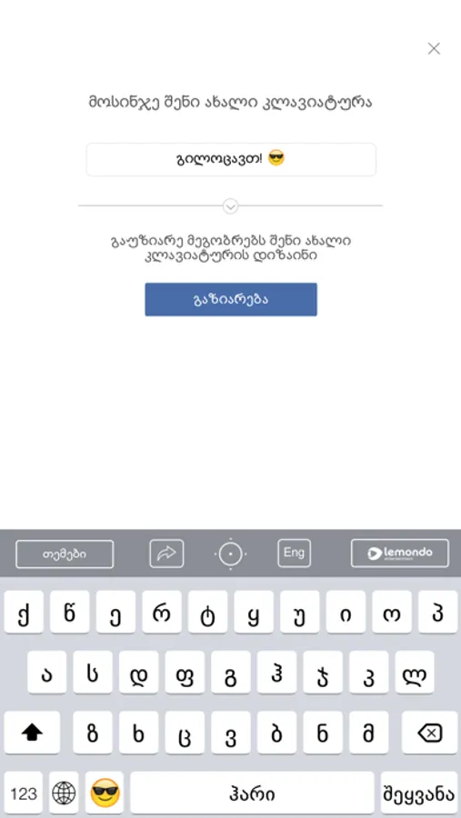 Simply the best Georgian Keyboard App on the AppStore for iOS 8 and 9 from Lemondo Business.
