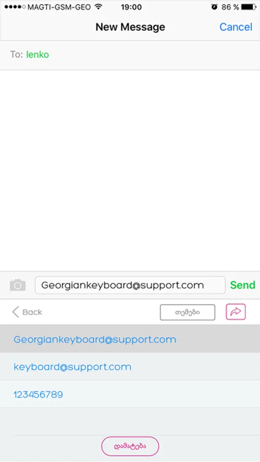 After downloading the app go to: Settings > General > Keyboard > Keyboards > Add New Keyboard > and choose Georgian Keyboard, Tap newly added Georgian Keyboard and switch to Allow Full Access in order to use all the features offered by Georgian Keyboard ™.
