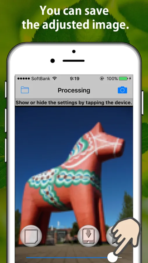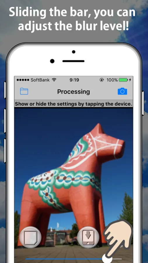 Easily manipulate blurring processed photos taken from the camera or selected from the photo library.