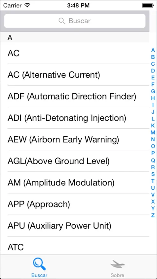 Este APP contém mais de 4000 palavras e termos utilizados oficialmente na aviação internacional regida pela OACI.