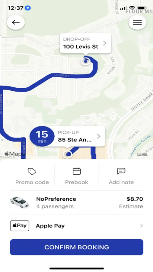 • Enter your destination address (this allows us to provide an estimated fare amount)