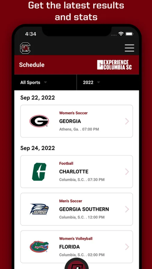 The official South Carolina athletics mobile app has been completely re-imagined for Gamecock fans. Whether you’re attending a game in person or following from across the country, this app has you covered.