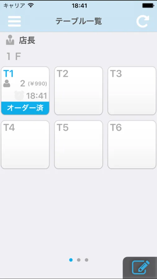 テーブルが追加になった場合、メニューが変更になった場合は必ず同期をしてから注文を行います。