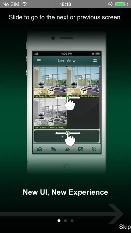 · Swipe for PTZ control and camera movement, pinch to zoom in and out in preview mode;