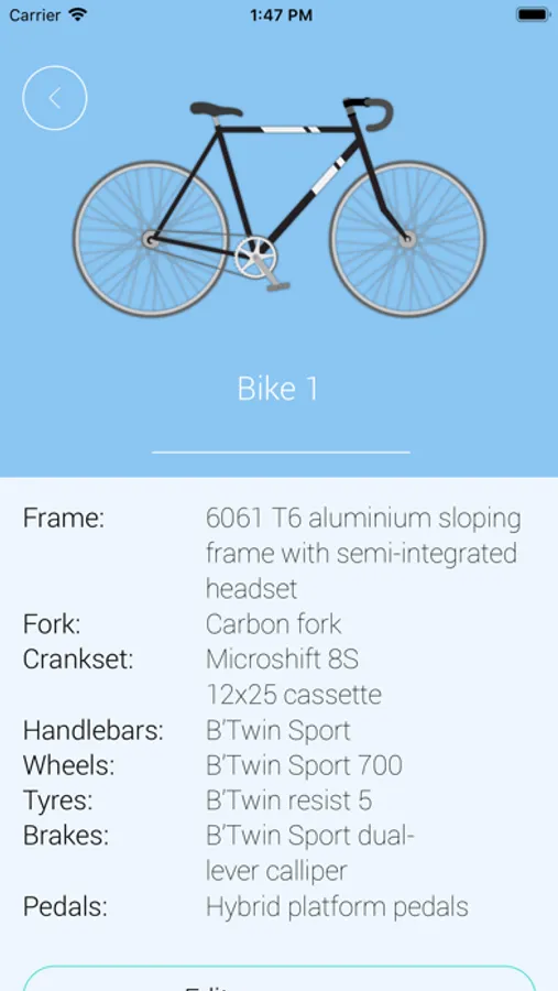 • Save details and specifications for as many bikes as needed.
