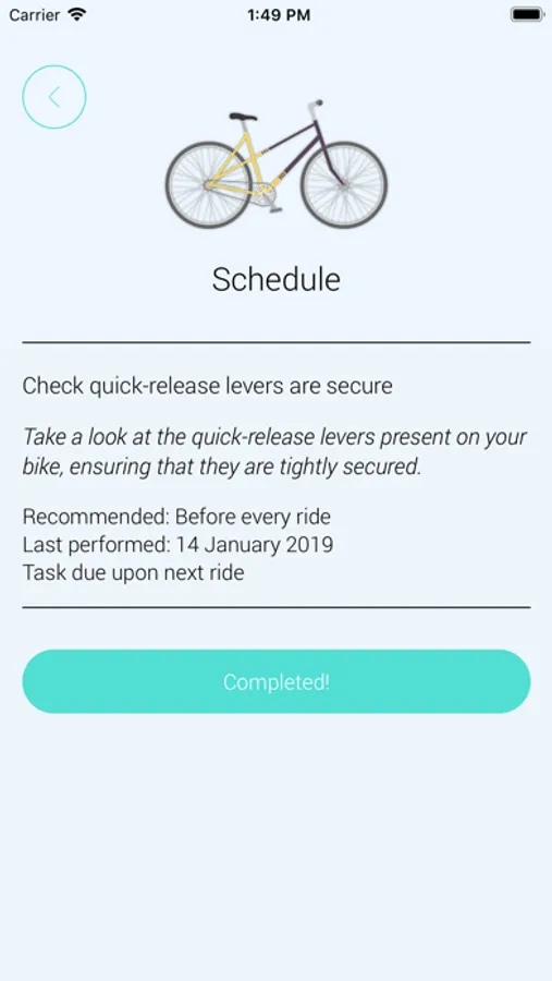 • Complete and track repeating maintenance tasks to ensure that your bike is always in tip-top condition.