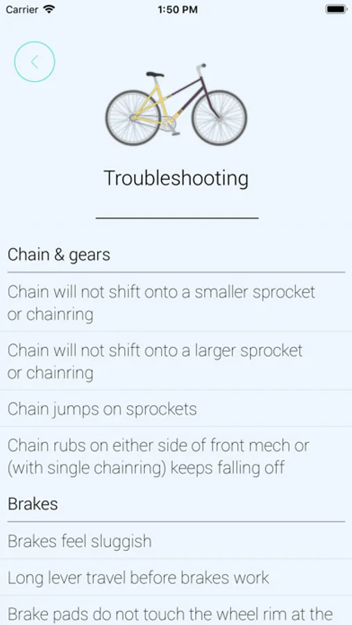 • Easily find information on bike problems with the Troubleshooting section.