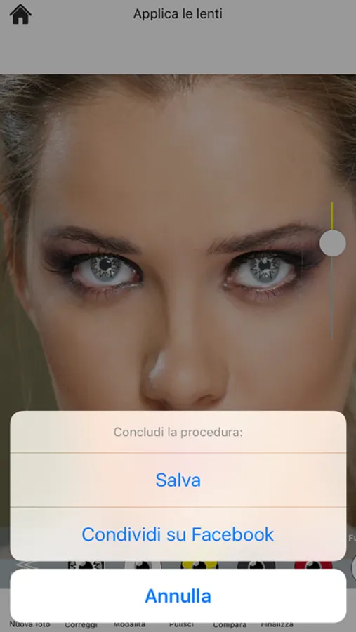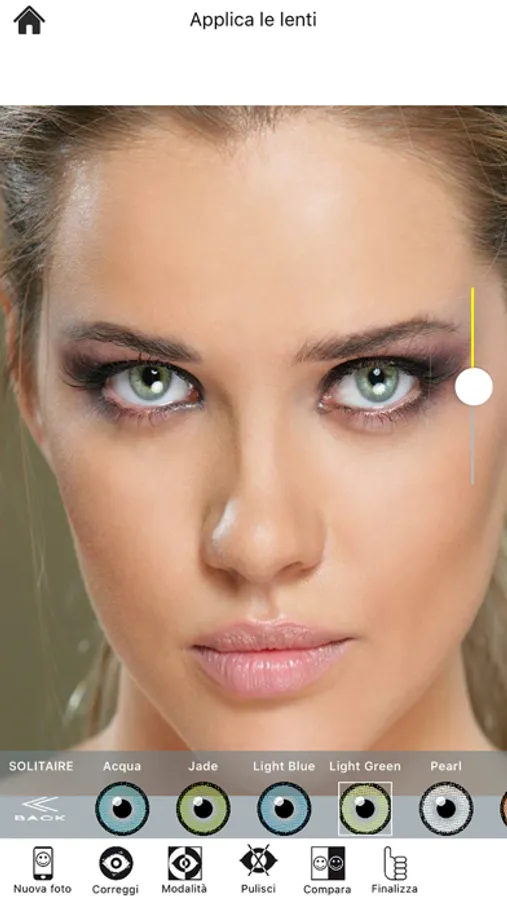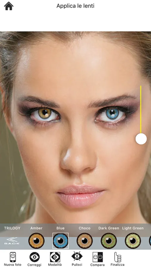 Grazie al sistema di riconoscimento facciale, è possibile provare l'effetto del colore che preferisci direttamente sui tuoi occhi, salvare la foto e condividerla.