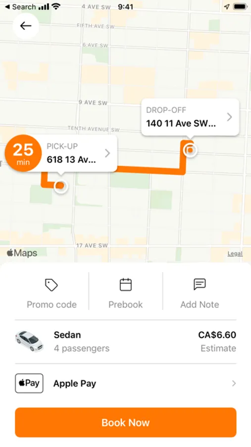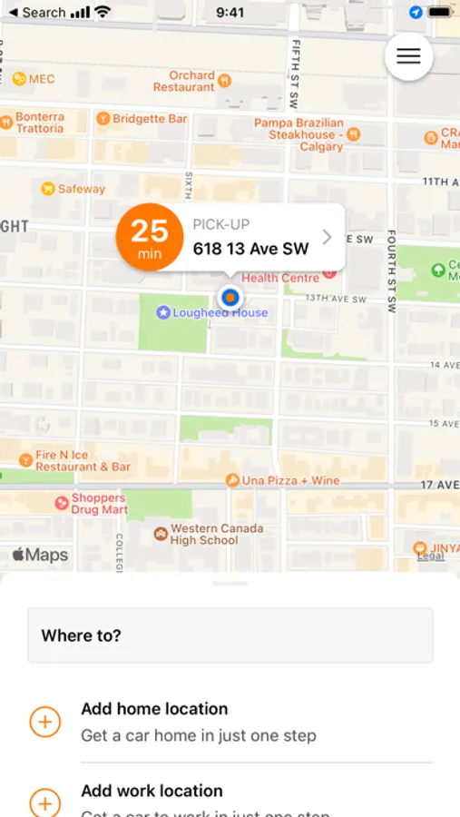 • Enter your destination address (this allows us to provide an estimated fare amount)