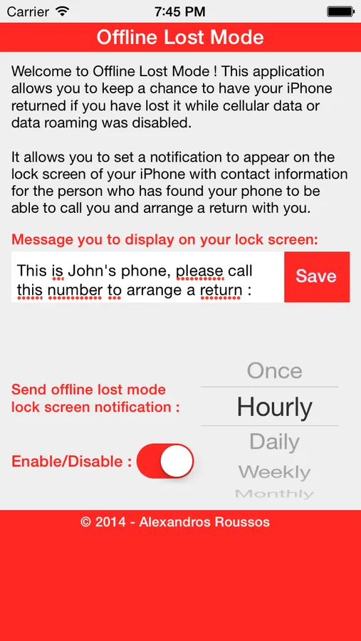 Welcome to Offline Lost Mode ! This application allows you to keep a chance to have your iPhone returned if you have lost it while cellular data or data roaming was disabled.