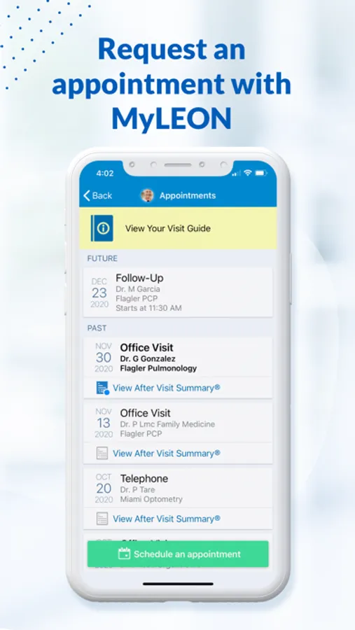 You can always see your electronic health record on MyLeon. It’s a free online system that every patient can use at Leon Medical Centers. It puts all of your health history in one place, where it’s safely stored and can’t be accessed by anyone but you and your healthcare providers.