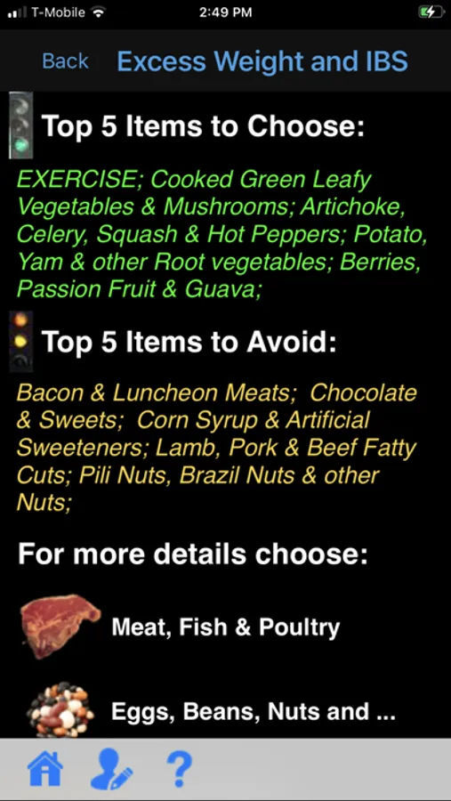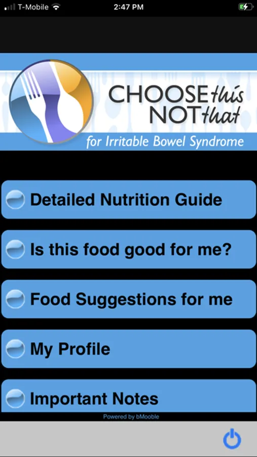 Choose This not That for IBS. Inside this colorful app, you will find easy to follow suggestions on how to improve your health through nutrition and the food choices you make every day. This app provides comprehensive and actionable nutrition guidelines for how to prevent and reduce symptoms associated with IBS.